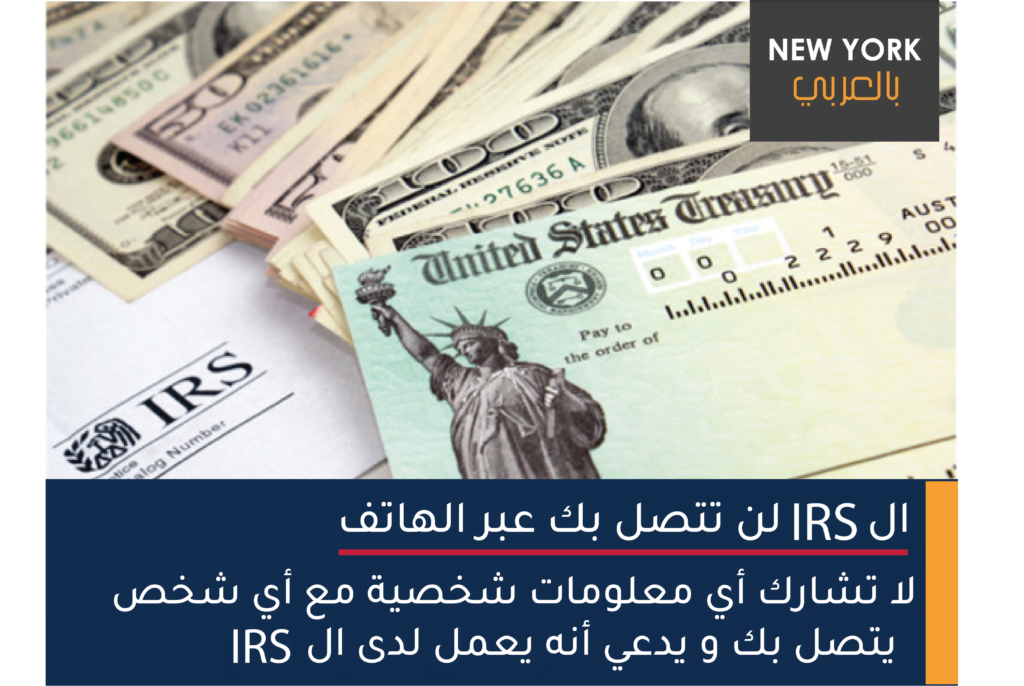 تحذير مهم جدا: لا تشارك أي معلومات شخصية مع أي شخص يتصل بك و يدعي أنه يعمل لدى وزارة الخزانة الأمريكية و يريد معلوماتك الشخصية أو المصرفية من أجل إرسال الدعم الحكومي. الطريقة الوحيدة للتوصل مع ال-IRS هي عبر البريد. حذر أصدقائك و اقربائك! مشاركة معلوماتك المصرفية عبر الهاتف قد تعني خسارة كل المال في مصرفك!
